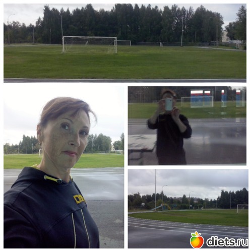 Физическая нагрузка для поддержания сброшенного веса Утро, суббота! Я на стадионе! Моя тренировка проходит так: лёгкая пробежка 10 кругов по 400 метров, затем ходьба в быстром темпе 5 кругов, а потом 10 минутная растяжка. Сегодня утро выдалось пасмурное, всю ночь шёл дождь, но зато не жарко! Всем хорошего удачного дня!!!