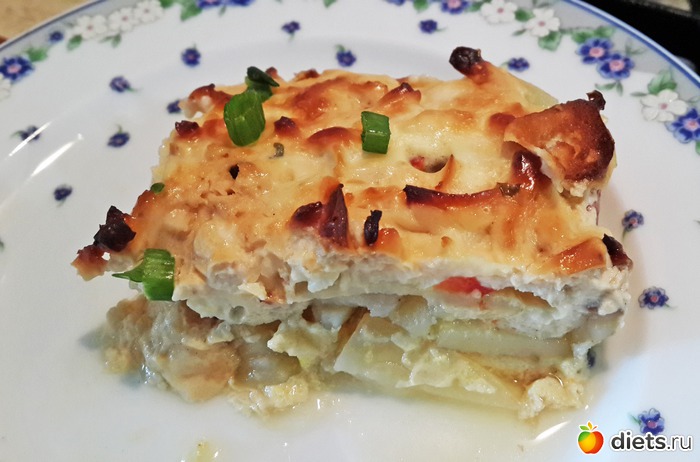 Попался мне упрощенный рецептик мусаки с рыбкой и я недолго думая решила сделать что то наподобие из продуктов, что нашлись в холодильнике: филе минтая (упаковка 500 грамм - после размораживания меньше - грамм 300 думаю осталось), остатки сметаны, какого то мягкого сыра..., чуток майонеза.. в общем: