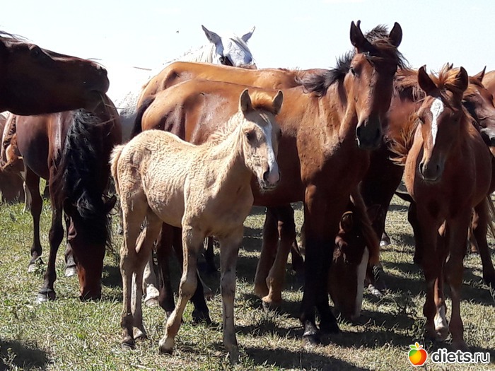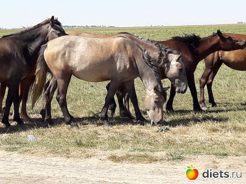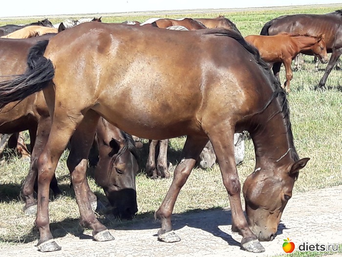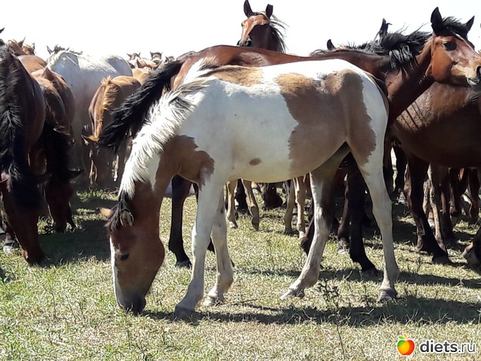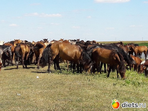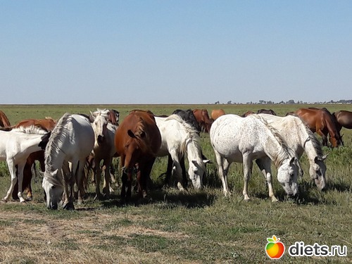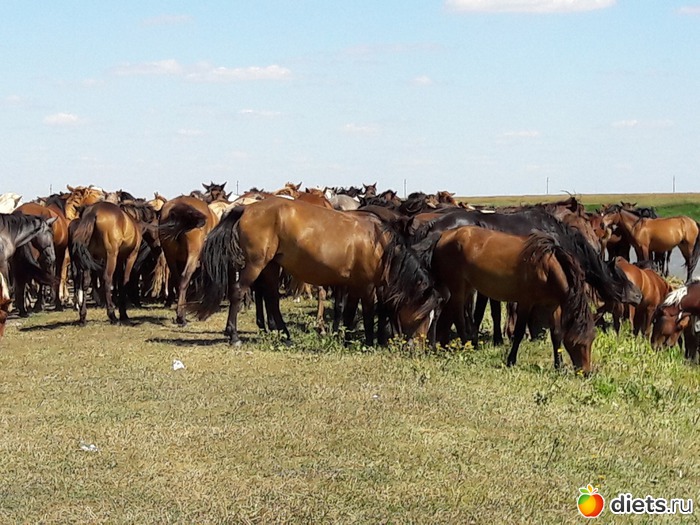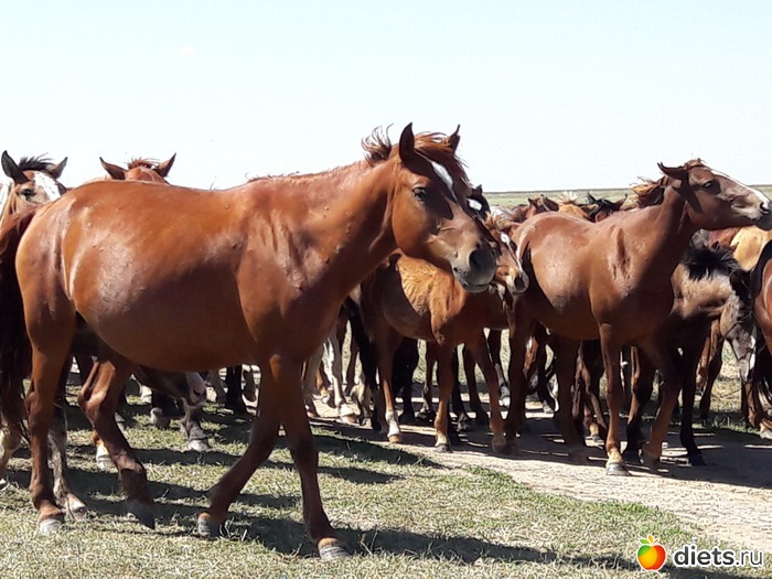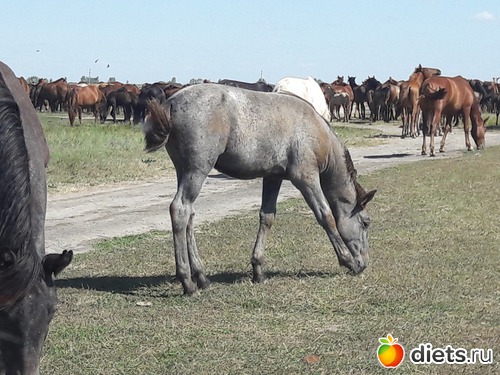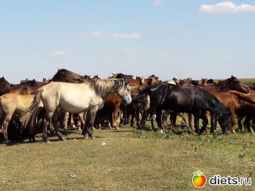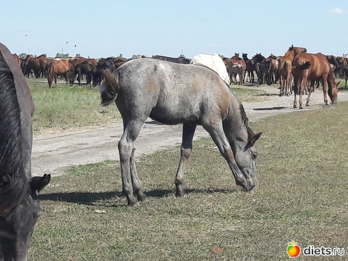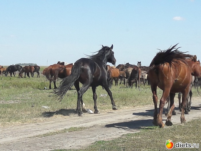 не знаю, сколько их было в табуне, может штук 80...