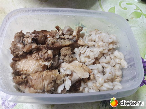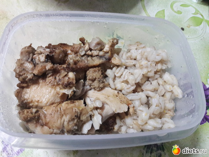 Обед - запеченная курица, перловка