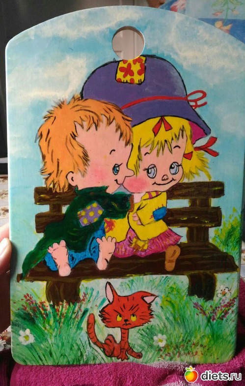 Заодно закончила разрисовывать разделочную доску. Вот что получилось.