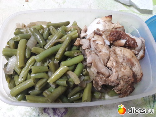Ужин - запеченная курица + тушеная стручковая фасоль