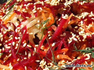 Кунжут можно использовать практически в любом овощном салате, в состав которого входят оливковое масло, помидоры и какой-нибудь кислый компонент – это может быть зеленое яблоко или сок лимона.