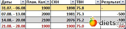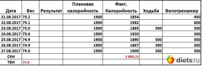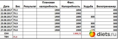 Еще раз убеждаюсь глядя на твою табличку,что «халявы на МФ нэмае” . Мистер МФ благосклонен только труженникам --попробуй ежедневно накрути педали на велотренике на 300 ккал и с палкам попотей в тот же день! еще на 300 ккал.Так что МФ любит работящих,вон и на прошлой недели мы радовались «юбилейному»весу Галочки,которая тоже по МФ сбрасывает,там активность огоо. Посчитала и по вышестоящ.формуле свои дневные ккал.Жирно мне, однако вышло 2254.Пока времени на спорт выделить не могу -уж очень у меня спонтанно последнее время