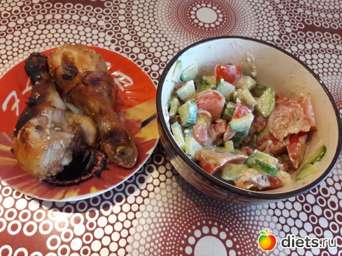Ужин - куриные ножки + овощной салат с сыром "Сиртаки"