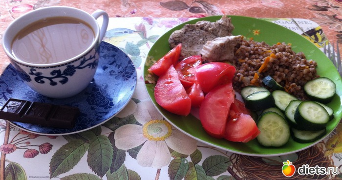 На обед: грудка индейки на пару, овощи, отварная греча, на десерт 20 гр темного шоколада "Бабаевский" и цикорий с молоком.