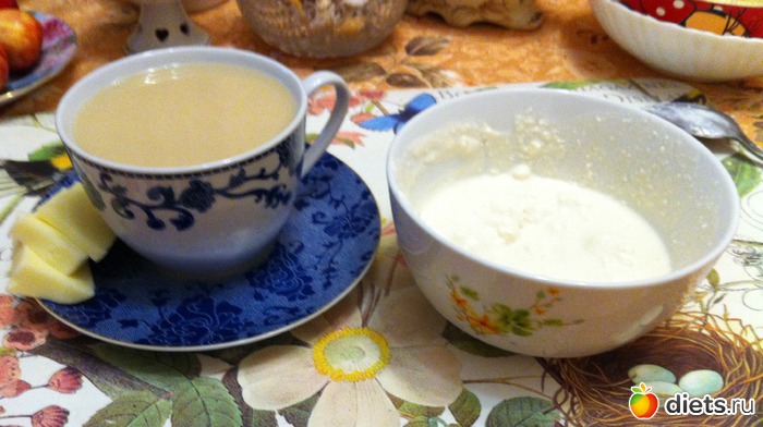 На ужин, через час после трени: творог+ряженка, сыр "Моцарелла", чай с молоком