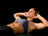 В отличие от прошлых упражнений для похудения живота – это исполняется с большой амплитудой. Исходная позиция: лежа на полу, ноги согнуть в коленях, руки — за голову, локти разводим в стороны. Вдох: оторвите ваш корпус от пола, при этом поднимаясь к коленям. При выдохе – возвращаемся в исходную позицию.