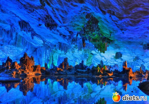 Благодаря уникальной подсветке и отражению в подземном озере, — создается впечатление застывших действ, которые имеют по китайской традиции поэтичные названия: