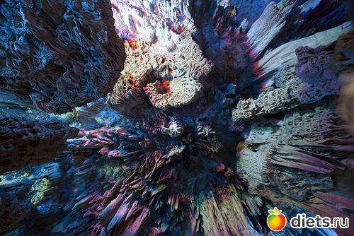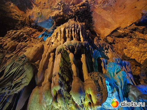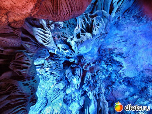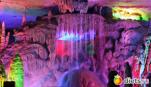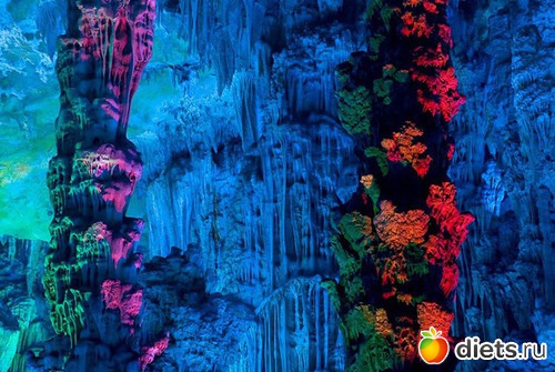 Подсвеченные сталактиты образуют картины, по китайской традиции поэтично названные в духе