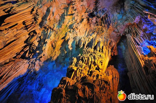 Пещера Тростниковой Флейты, входящая в систему пещер и тоннелей со множеством хрупких сталактитов и сталагмитов, одна из наиболее известных пещер.
