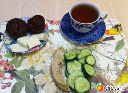 Ужин: индейка, огурец, адыгейский сыр, ПП-кексы, чай.