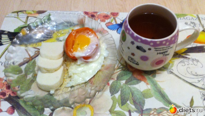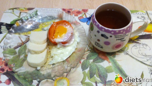 За 3 часа до сна: яйцо с помидором, сыр адыгейский, чай.