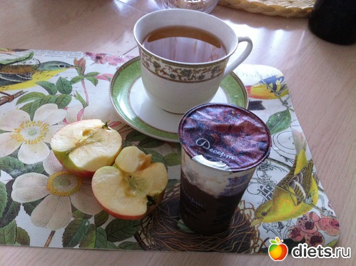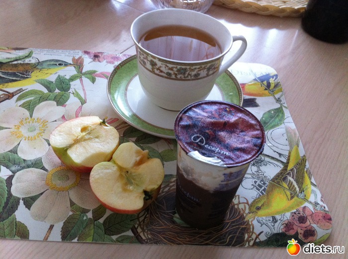 Полдник: Десерт «шоколадный пудинг со сливками», яблоко, чай.