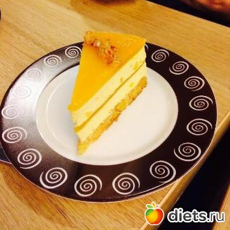 В кафе: торт «Манго-маракуйя», зеленый чай.