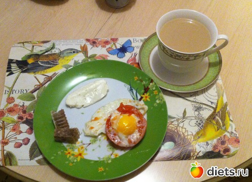 Ужин: холодец, сыр адыгейский, яйцо, помидор, чай с молоком.