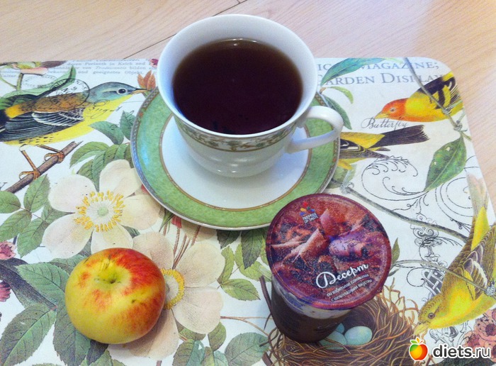 Полдник: десерт «пудинг со сливками», яблоко, чай.