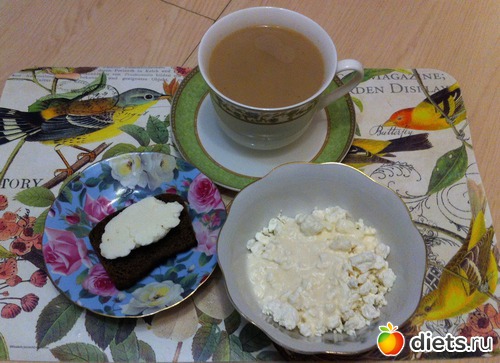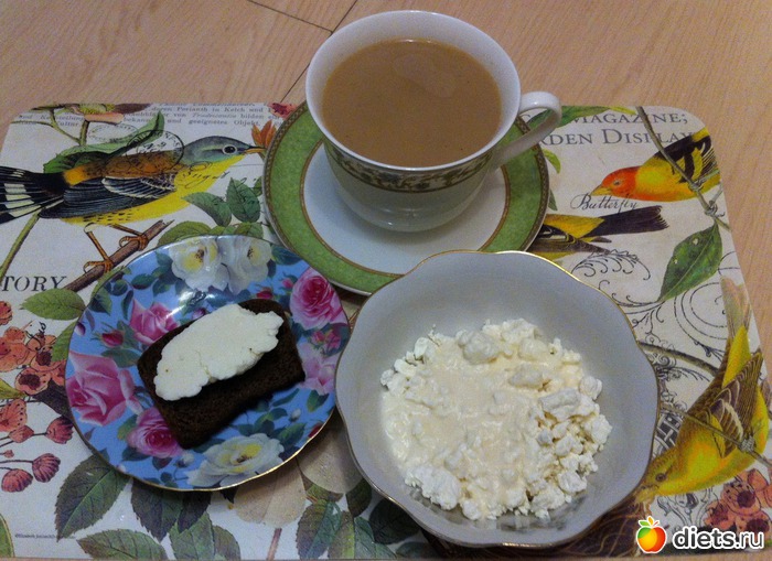Ужин: творог 5% + йогурт, бутерброд с адыгейским сыром, кофе с молоком.