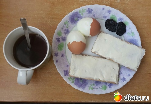 На завтрак у меня было, одно яйцо, два хлебца с виолой, курага чернослив, на фото по другому, не осилила яйцо, и добавила кураги