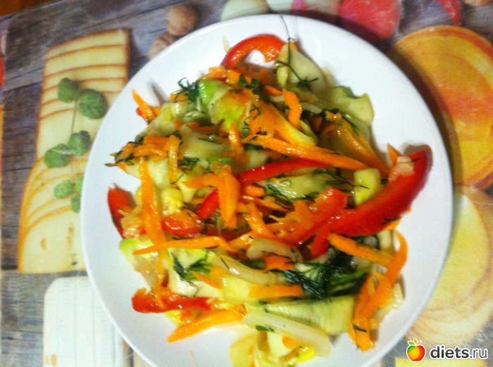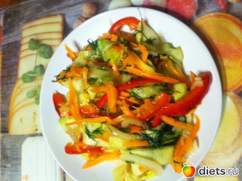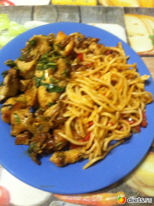 Макароны с тушеными помидорами и грудка жаренная, может на фото порции кажутся большими, но на самом деле не так. И кабачки по-корейски. Вообще-то делала их, чтобы закатать, но походу мы их и так слопаем.