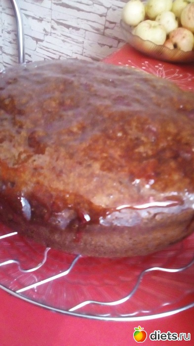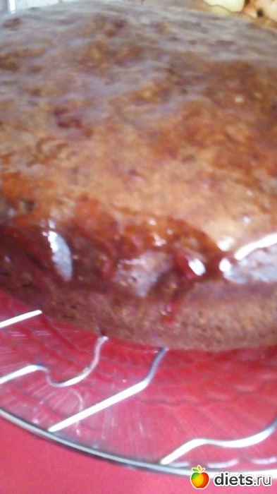 Я, еще горячий, пирог смазала просто жидким вареньем. Пирог получается блестящим!