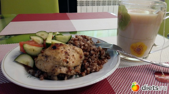 О. Запеченное куриное бедрышко с гречкой+салатик+молокочай