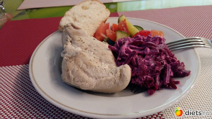 О. Отварная грудка+салат из помидоров и огурцов+свекла с майонезом и чесноком
