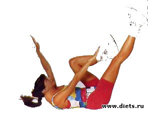 Упражнение для боковых мышц живота. Положение лежа, руки за головой. Согните ноги в коленях, левую стопу поставьте поверх правой. Корпус слегка приподнимите и поверните направо. Тем же путем возвращаемся в исходное положение. Проделайте 5-10 повторений для каждой стороны, поменяв взаимное положение ступней.
