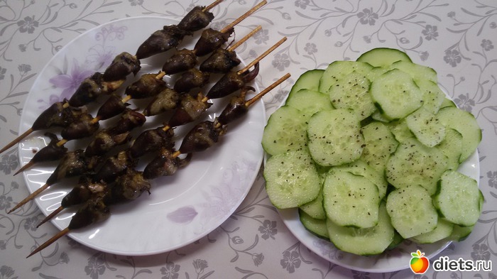 Танюша рецепт прост: сердечки заливаю соевым соусом, добавляю чеснок и черный молотый перец, перемешать, оставить на 15-20 минут. На шпажки. В разогретую духовку 180° минут на 20. И все.