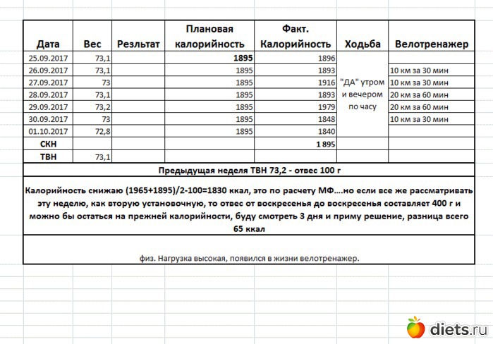 За неделю отвес 100г