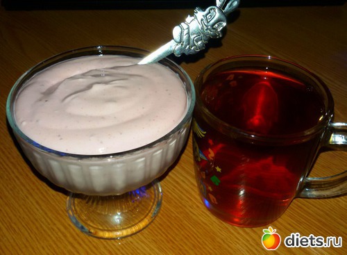 Взбивала с замороженными клубникой и бананом. Похоже на мороженое.