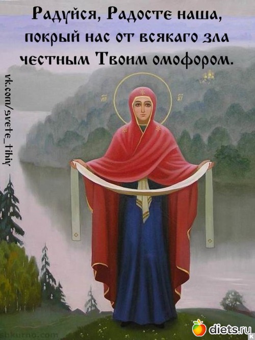 Считается, что если в день Покрова молиться Богородице, то она будет не только оберегать от всех жизненных невзгод, но и помогать целый год нуждающимся и просящим до следующего Покрова.