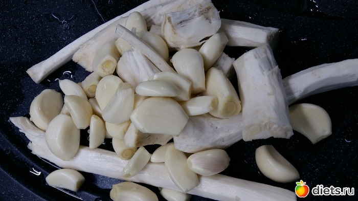 подготавливаю чеснок и хрен, очищаю и мою