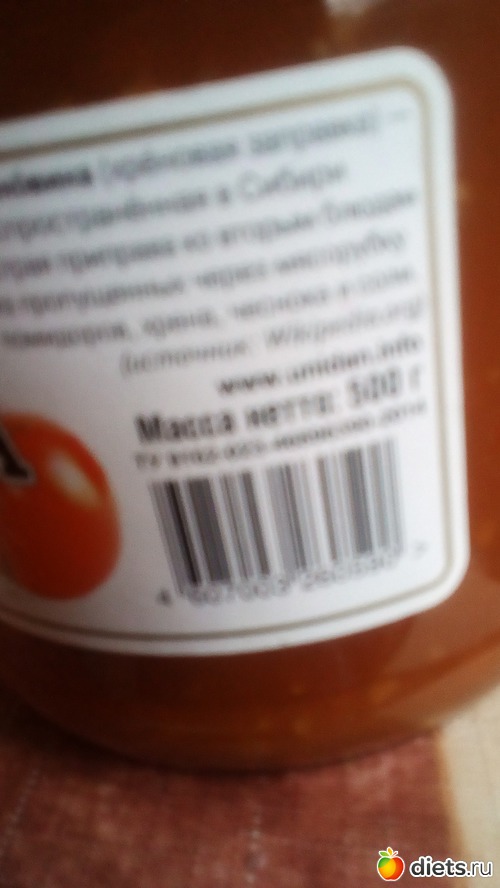 Как не старалась-так мелко написано,но написано,что натурпродукт,без всяких консервантов!Как домашняя!Срок годности у нее -год,вполне возможно и не так напичкано химией!Правда,написать все можно!Но нет у нас достойных овощей!Даже на базах-я писала,что у друга своя точка и откуда все берут,а потом просто пишут-Краснодар,Ставрополь и т.д.Дурят нас!