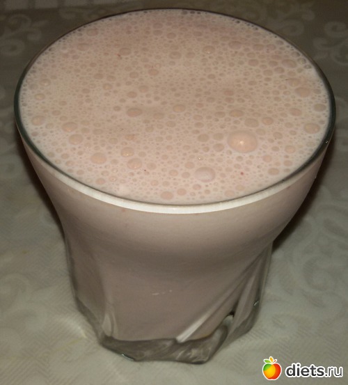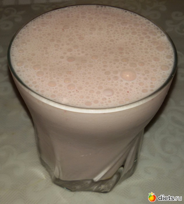 Коктейль из молока, йогурта, клубники и чуток банана.