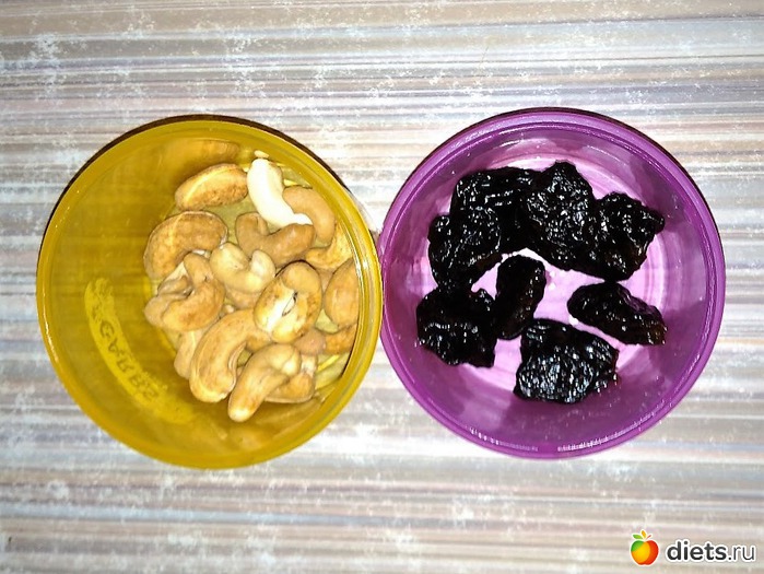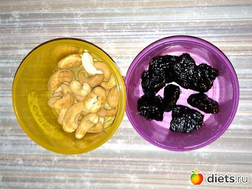 Ужин у меня прошел вне дома, поэтому пришлось сооружать походный вариант из орешков кешью и чернослива. Кофе мне налили уже в гостях (кофе на ужин - могу, умею, практикую!), там же угостили дыней.