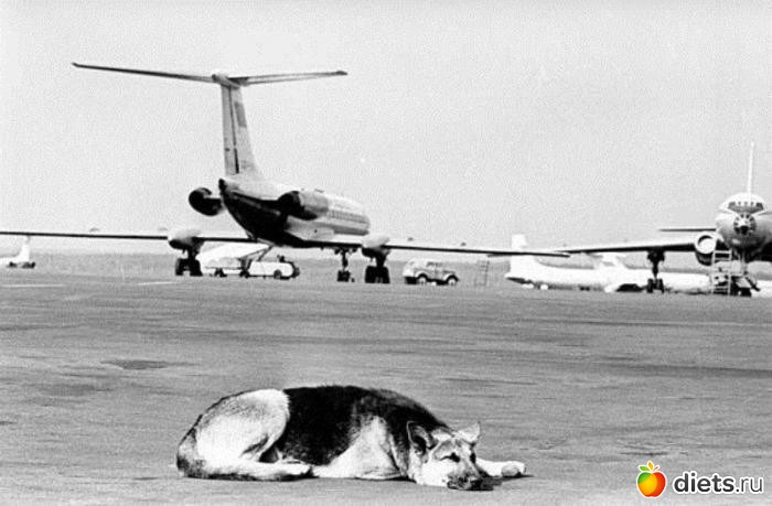 Шла посадка на самолет «Ил-18», отлетающий куда-то на Север. Люди суетливо семенили за дежурной, спеша первыми сесть на тихие места в хвосте. Лишь один пассажир не торопился. Он пропускал всех, потому что летел с собакой. Аэродромные техники, свидетели этой истории, утверждали, что у человека на собаку билет был, но овчарку в самолет не пустили — не оказалось справки от врача. Человек доказывал что-то, уговаривал…
