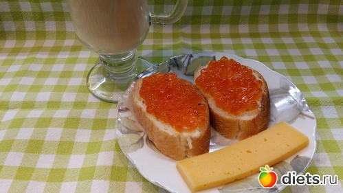 П.2 небольших бутербродика с икрой+кусочек сыра+молокочай