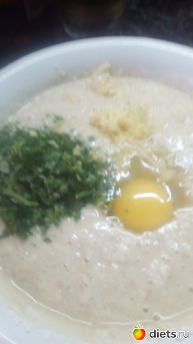 Залить геркулес фасолевым отваром и дать постоять ему минут 5-10, пусть геркулес чуть набухнет!. Далее добавляем все компоненты, перемешиваем до однородного состояния. Тесто должно получиться по густоте как на оладьи.