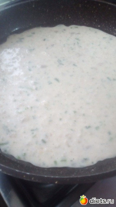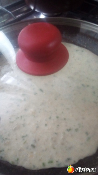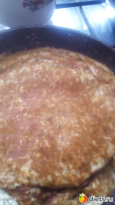 Перекладываем в форму или сковороду! Если Вы решили жарить на сковороде, то ее следует смазать! Выпекаю я обычно в силиконовой форме-тогда ее просто сбрызгиваю водой, можно испечь и в тефлоновой форме или в форме для пиццы-эти формы необходимо смазать! Как выпекать-Вы определитесь сами!(Я в этот раз жарила на сковороде, под крышкой!)