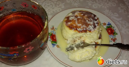 А у соседки был свет,пошла со своей сковородкой жарить 2 сырника...опять развалились чуток,может из-за муки,то что мало?но все равно был интересный вкус и без яйца))