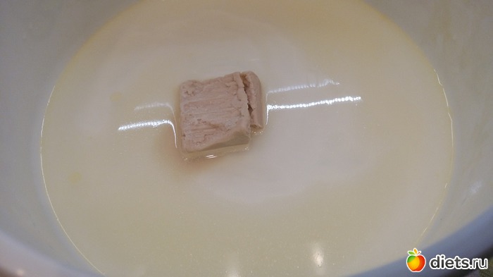 и 20-25 грамм прессованных дрожжей, только смотрите чтобы вода была теплой, а не горячей