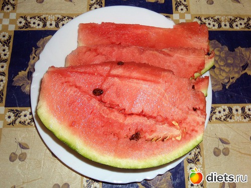 А я все время забываю про арбуз. Тоже с удовольствием бы ела его... А он не много сахара даёт нам? На диете его можно?