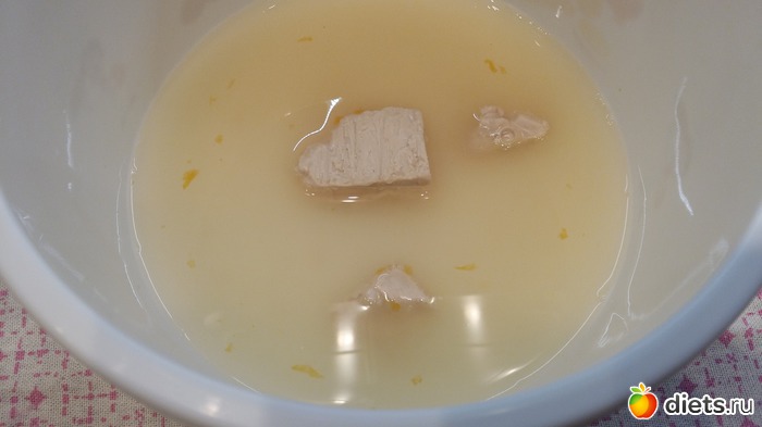 Пока пюре остывает в миску наливаю 0,5 стакана теплого отвара оставшегося от тыквы.