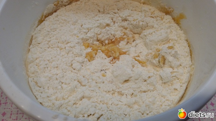 Просеиваю муку, у меня ушло примерно 500-550 грамм, но муку лучше добавлять постепенно, так как мука вся разная. Тесто должно быть очень мягкое. Хорошо вымешиваю тесто и в тепло на 1 ч-1,5