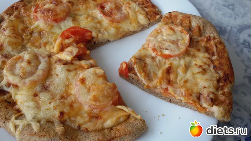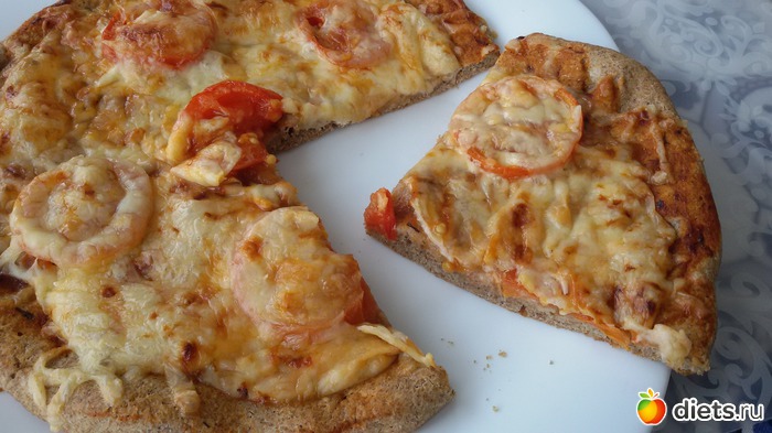 Пицца. Тесто: яйцо+кефир+ржаная мука+пшеничная мука+сода+соль. Думала будет тесто хрустящее, но получилось очень нежное и тающее во рту. Съела половину.