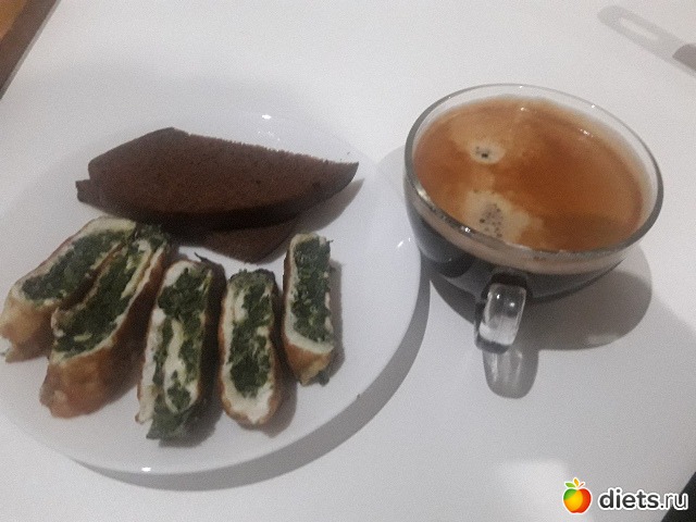 Неспешный завтрак: чашка ароматного эспрессо, омлет со шпинатом...