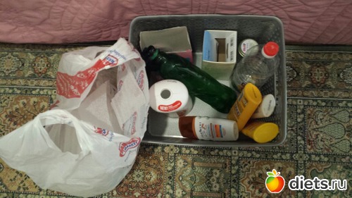 Вчера день пропустила, но сегодня поработала на славу. Куча всяких флакончиков и бутылок выгребла по углам. Коробочки, старые рез. перчатки и еще много мусора в пакете ( обрезки выкроек). В общем, появляются даже пустые полки уже. Так что результат есть. Правда и энтузиазм затухает. Надо как то себя подстимулировать.