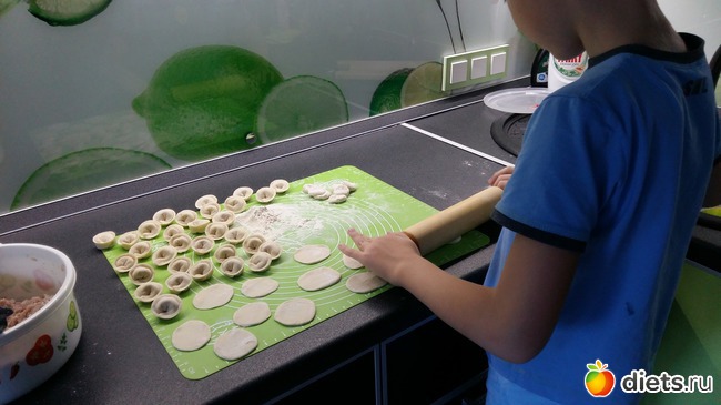 И сегодня делала руками пельмешки и Егорка немного помогал