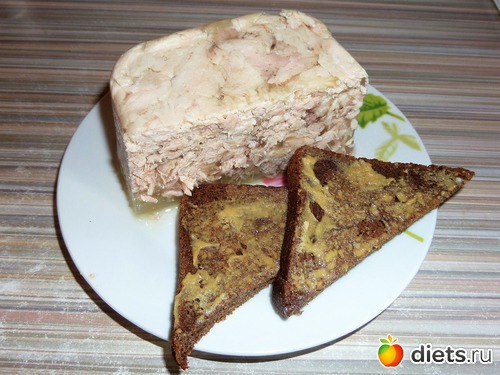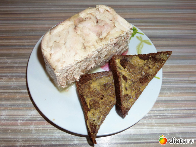 Обедала заливным из курицы и ржаным хлебом с "хреночицей" (так мой муж прозвал смесь горчицы с хреном).